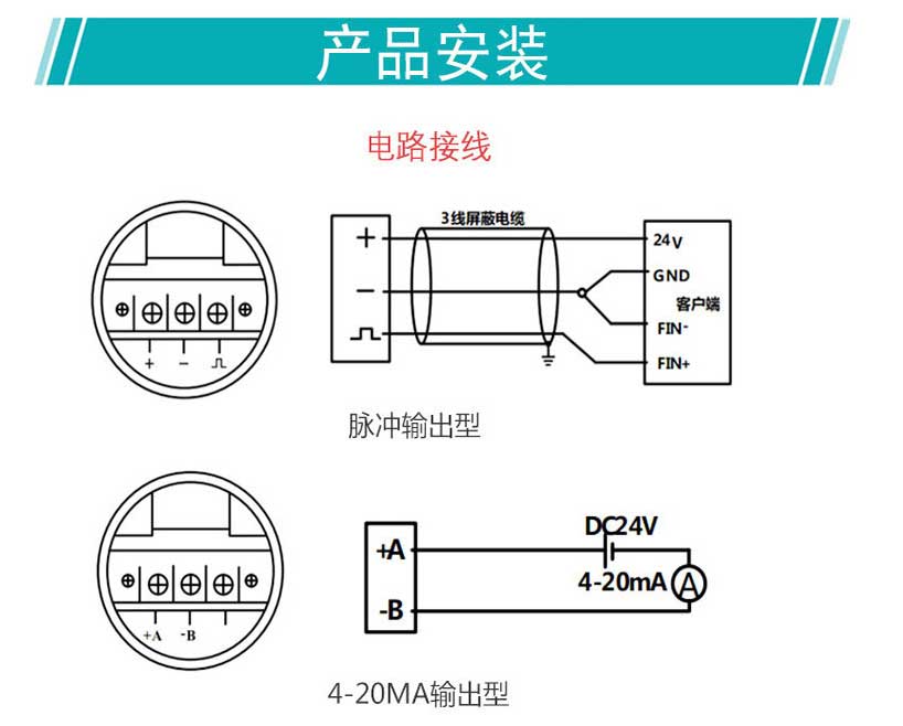 3. 管道方向:理论上可安装于水平、垂直管道,但测量液体时,要确保管道始终充满液体。垂直安装时,液体流向应自下而上。