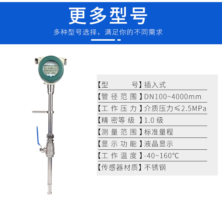 4. 适用于大管径管道:相对于满管式流量计,在大管径(DN80以上)应用中,插入式具有极高的性价比,安装和维护更方便。