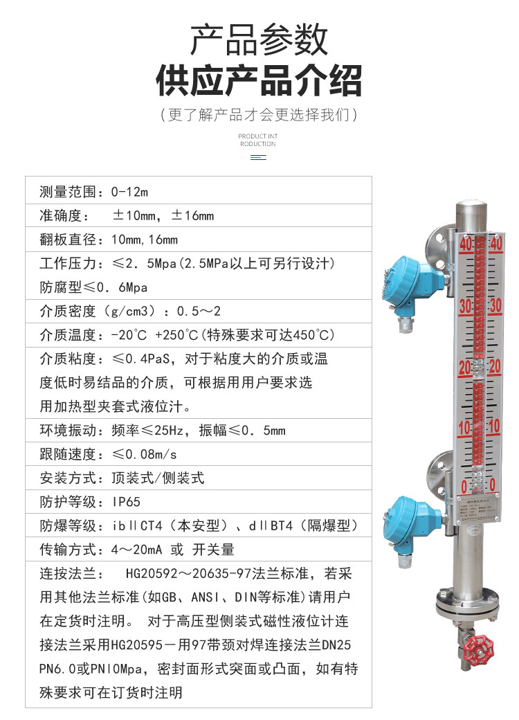在选择远传磁翻板液位计时,需要明确以下参数: