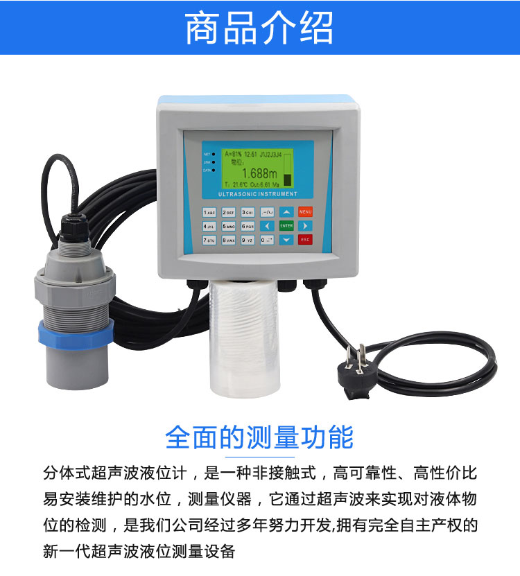 分体型超声波液位计是一种利用超声波技术实现非接触式液位测量的仪器。以下是关于它的详细介绍: