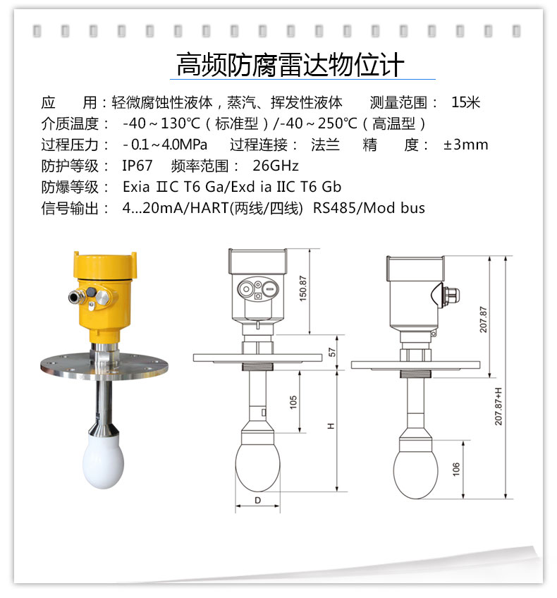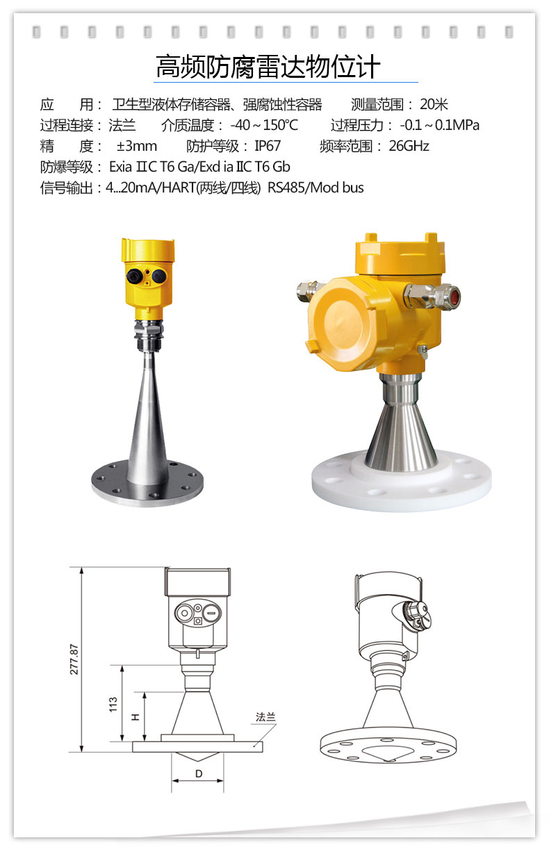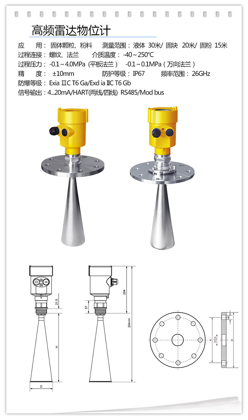 高频雷达液位计是一种基于微波反射原理的非接触式液位测量仪器,广泛应用于工业过程控制领域。