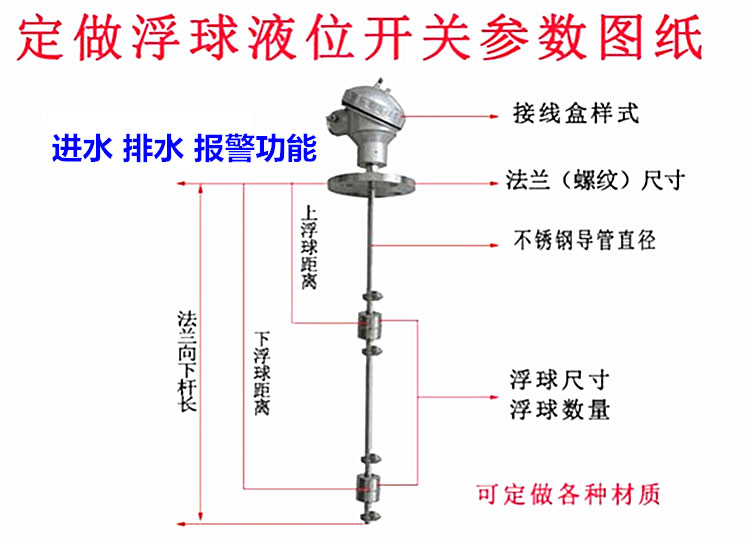 分类:按结构形式可分为侧装式、顶装式和连杆式。侧装式浮球液位计的导杆垂直安装于容器侧壁,适用于侧壁开口的储罐等;顶装式的导杆通过法兰固定于容器顶部,适合密闭容器或高温高压环境;连杆式浮球液位计的浮球通过连杆与外部指示器连接,安装灵活,适合空间受限的环境。