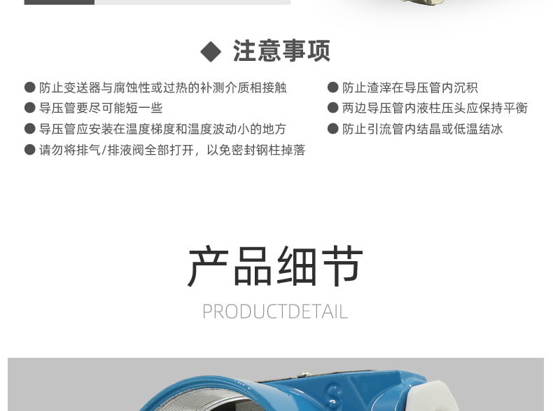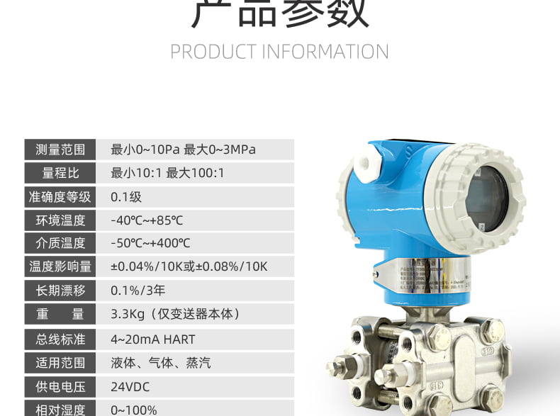 | 表压变送器 | 测量介质压力相对于大气压的差值,适用于开口容器压力、管道压力检测 | 自来水管道压力、储罐液位(开口罐) |