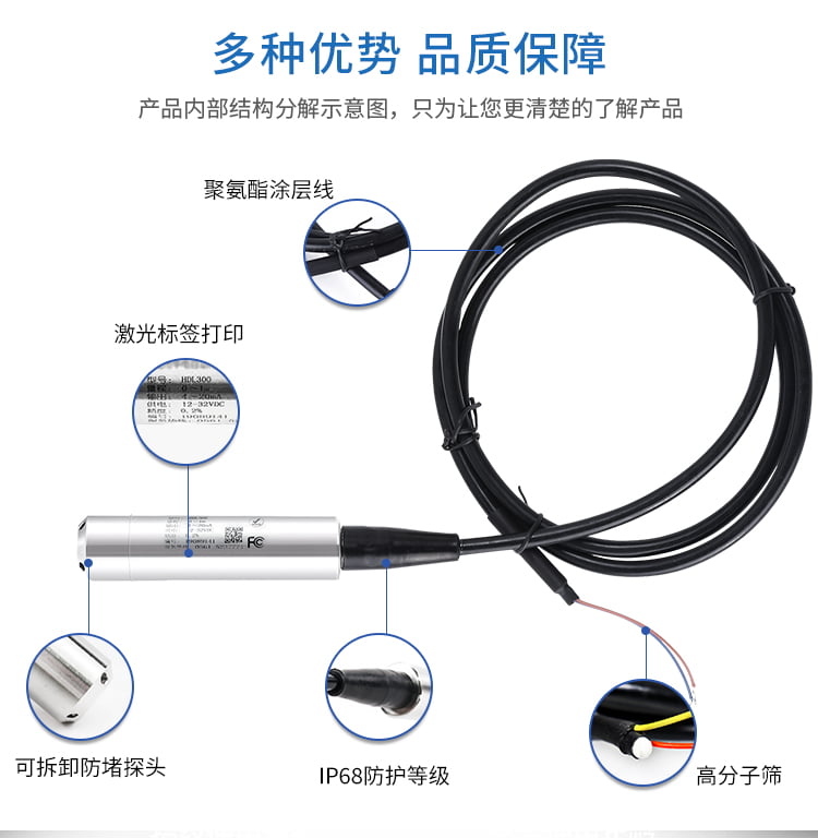 投入式液位变送器主要由以下核心组件构成,各部分功能与技术要求如下:
