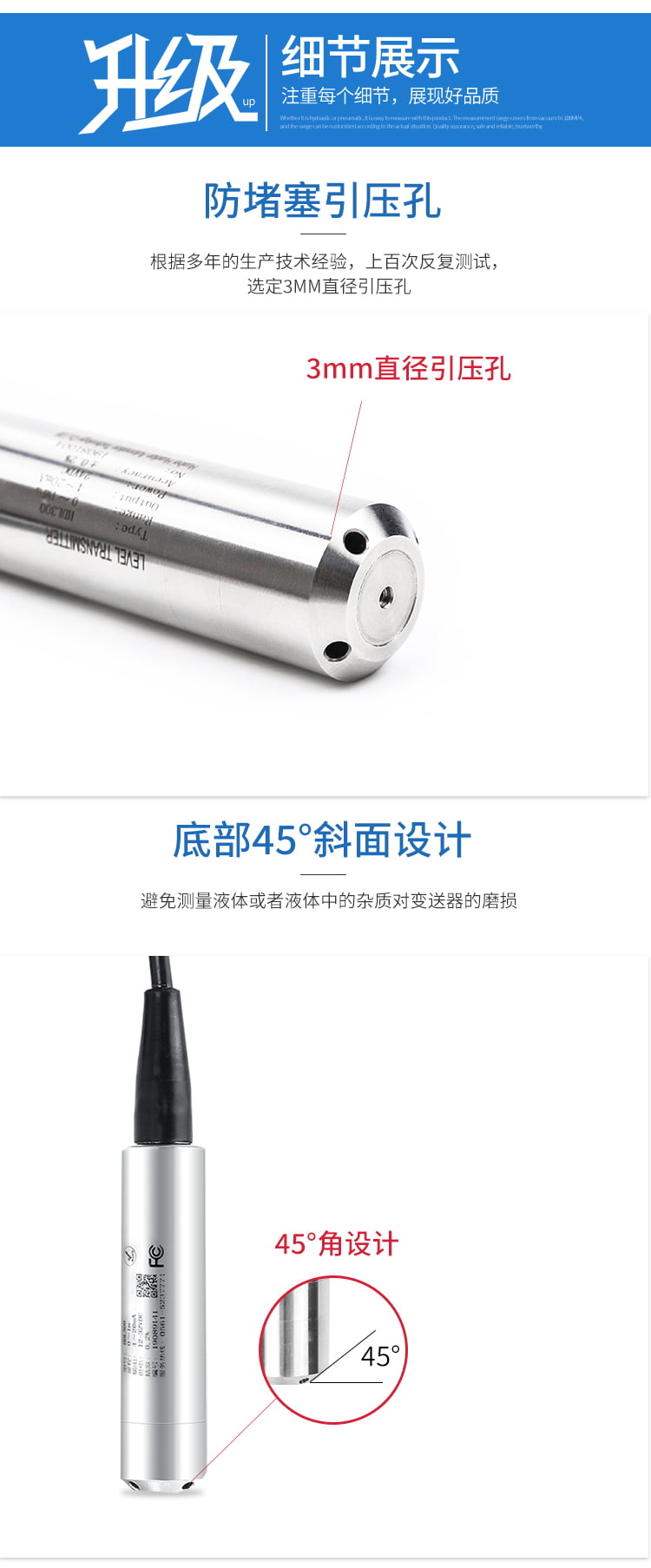3. 分辨率:≤0.01%FS,即最小可分辨的液位变化量,影响测量的灵敏度;