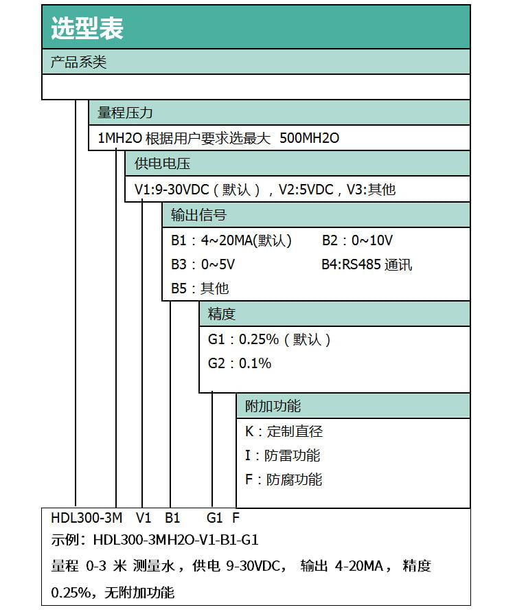 1. 测量范围:0-1mH₂O~0-200mH₂O(可定制更大范围),单位换算:1mH₂O≈9.81kPa;