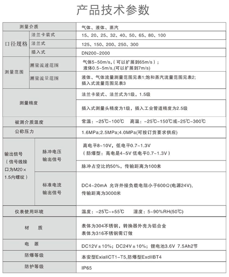 3. 功能要求:测量精度、量程比、是否需要温压补偿、数据输出方式(模拟量/数字量/无线远传)、防爆等级。