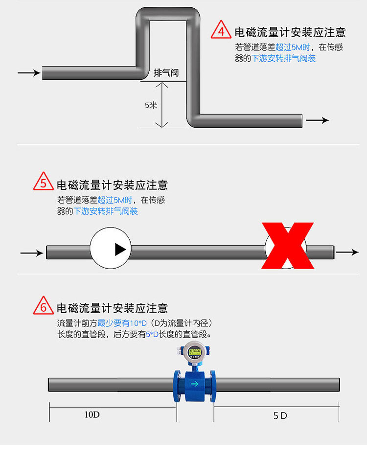 - 安装要求:为保证测量精度,仪表安装位置上游宜有≥5倍管径的直管段,下游宜有≥2倍管径的直管段。
