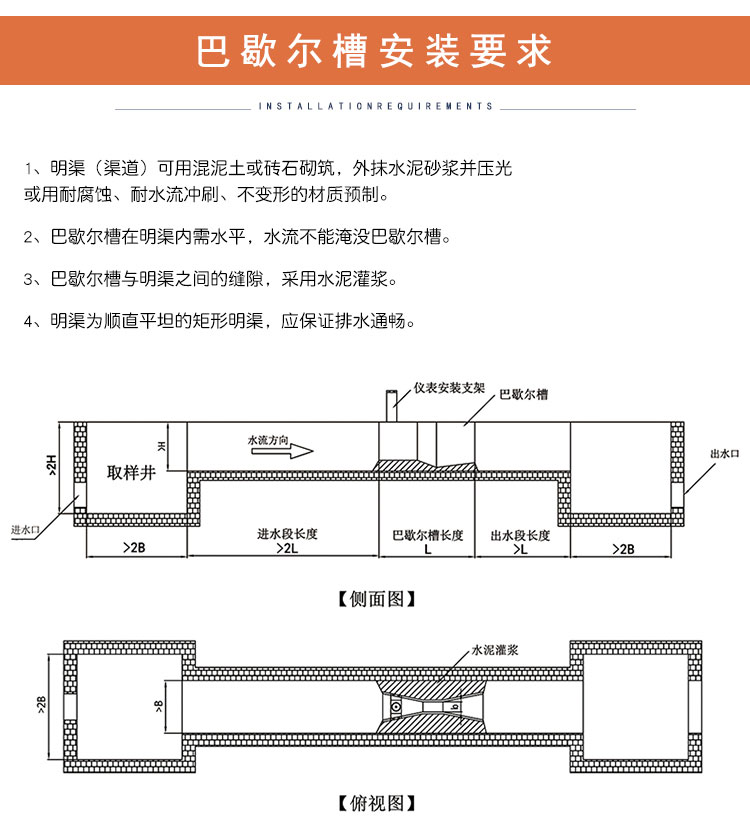 3. 保证流态稳定:堰/槽上游需要有足够的直渠道段,使水流平稳,无漩涡,否则会影响测量精度。