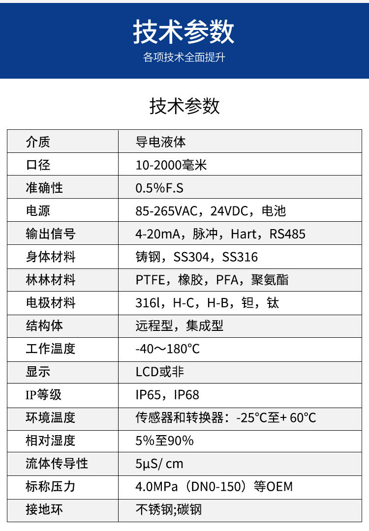 2. 管径尺寸:电磁和超声波流量计更适合大管径测量。