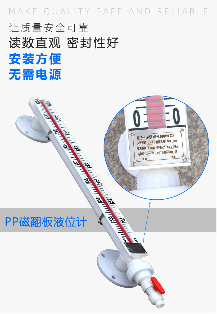 1. 显示直观、醒目:红白分界非常清晰,即使在较远距离也能准确读取液位,无需电源。
