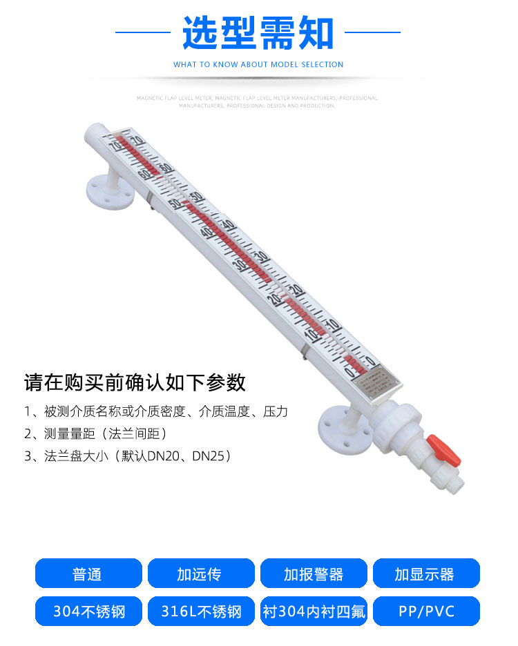 附加功能:根据实际需求,可选择是否配备保温、电伴热、蒸汽伴热等功能,以及报警控制的数量和远传方式等。