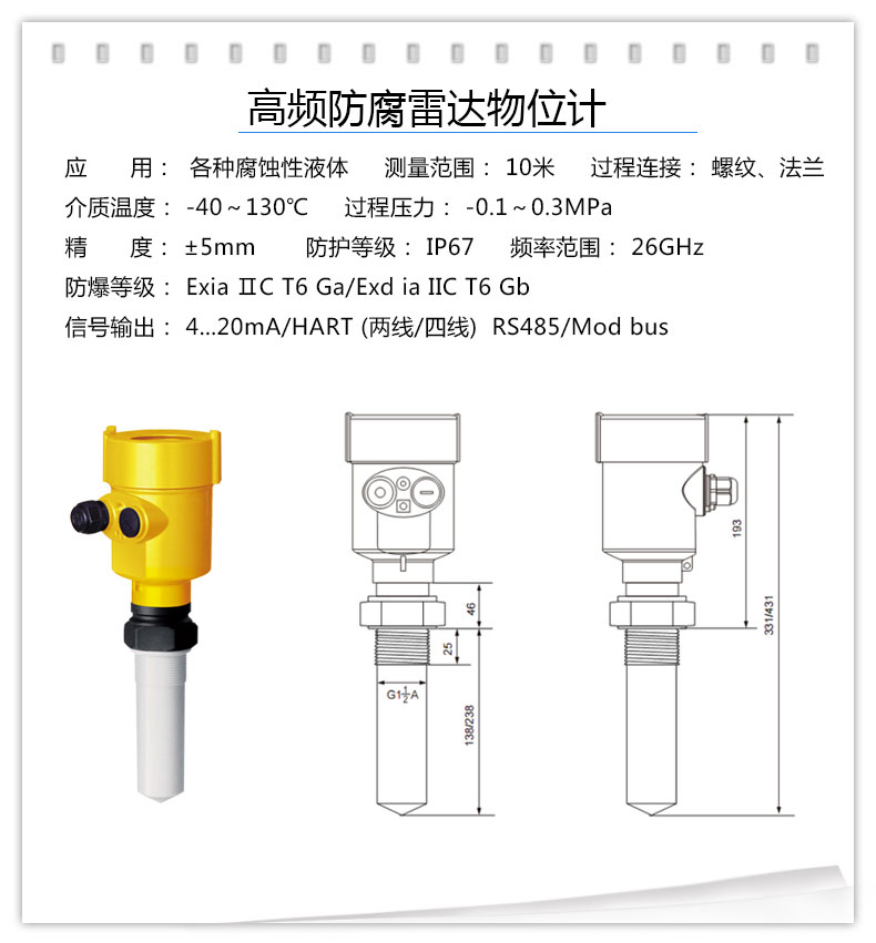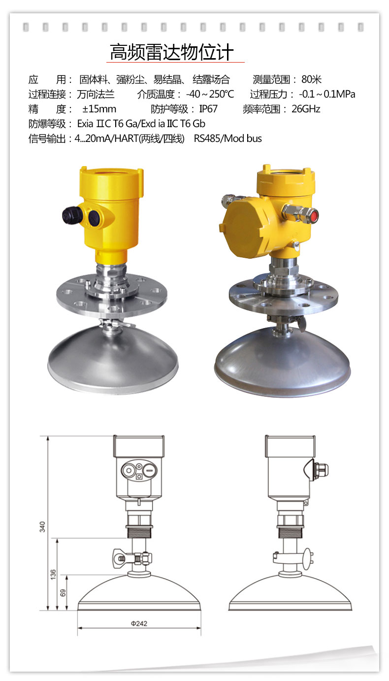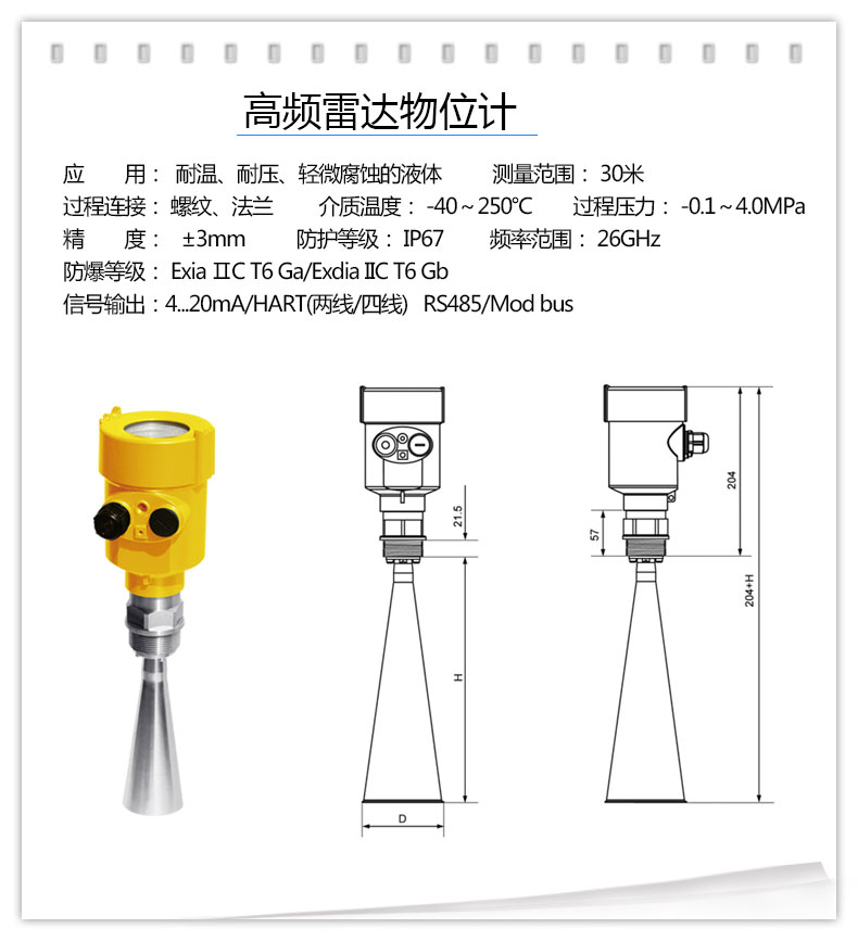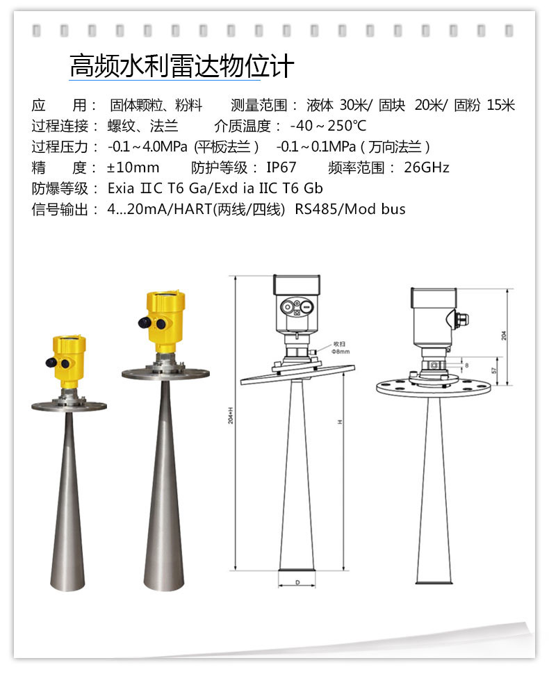 高频雷达液位计是一种基于微波反射原理的非接触式液位测量仪器,广泛应用于工业过程控制领域。