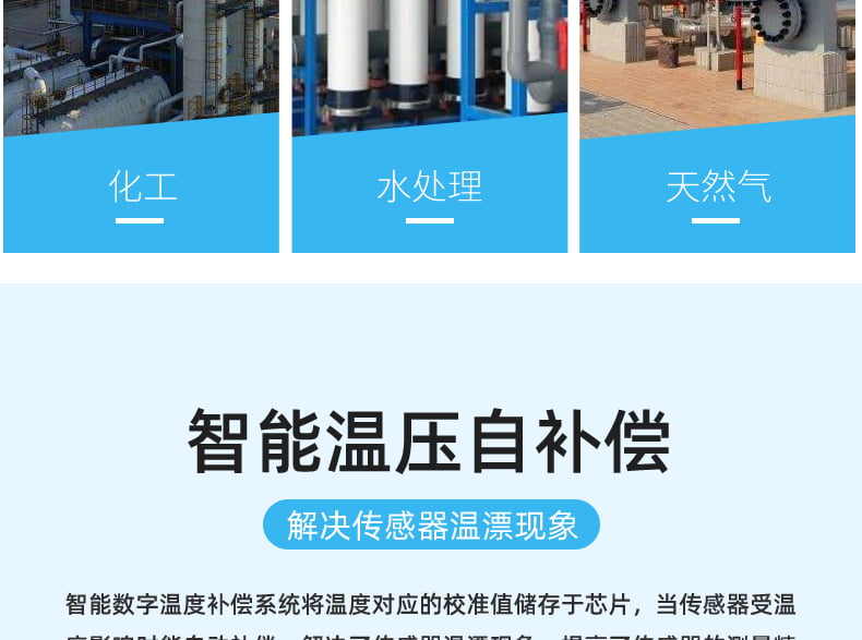 - 水处理:自来水厂管网压力、污水处理池液位(差压式)、水泵出口压力;