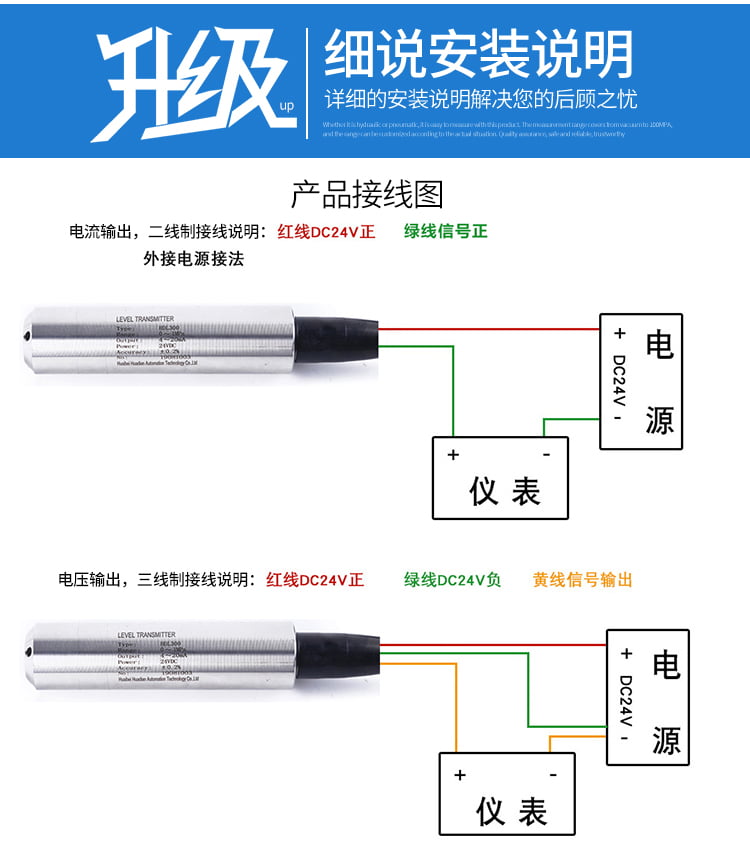 - 普通防护型:防水等级IP67,材质316L不锈钢,适用于洁净水、油类等无腐蚀介质;