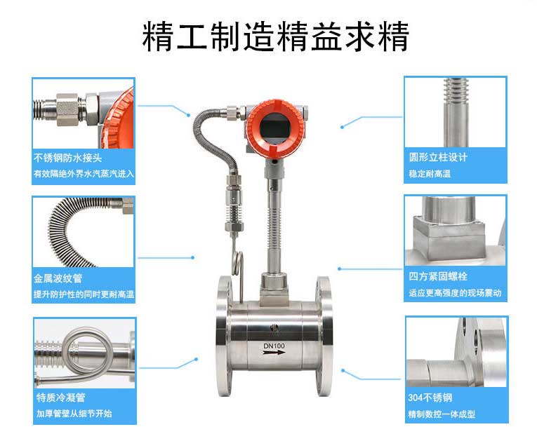- 涡街流量计:旋涡发生体需垂直向下(水平安装),避免凝液在发生体周围积聚;振动源附近需安装减振支架;
