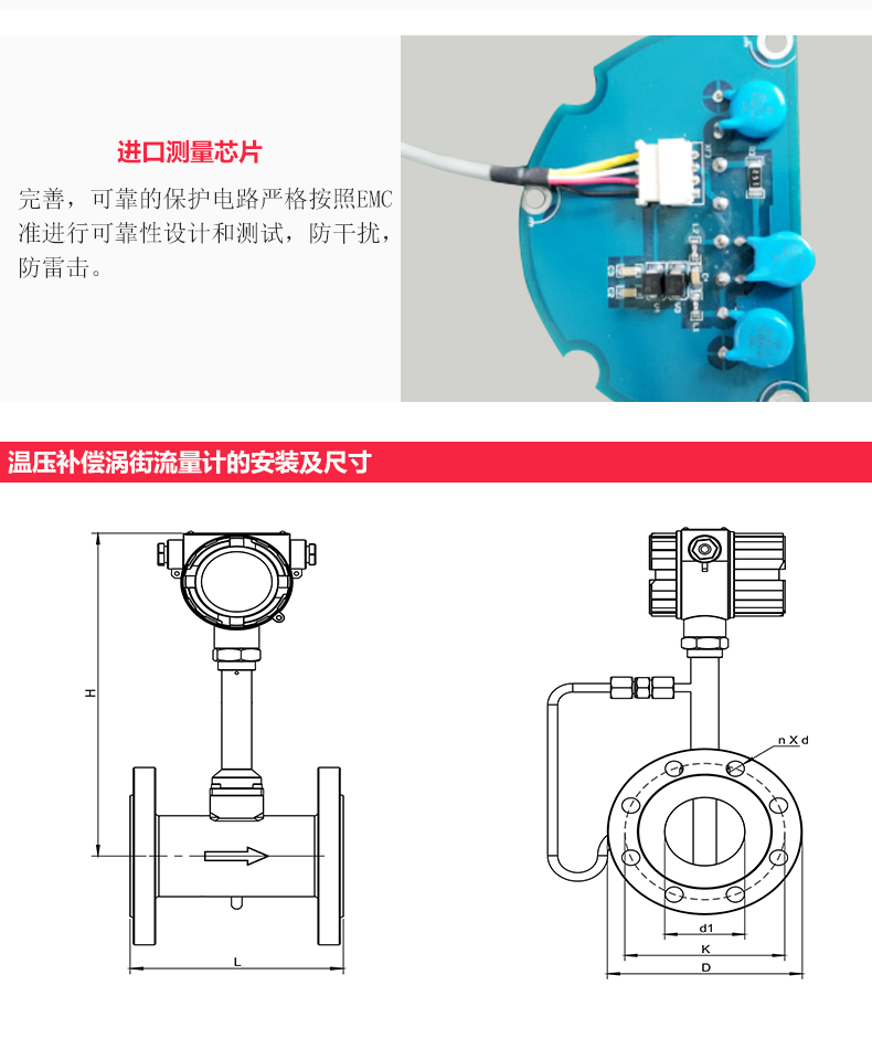- 结构组成:旋涡发生体(圆柱、三角柱)、压电传感器、信号放大电路、温度/压力补偿模块(部分型号内置,用于质量流量换算)。